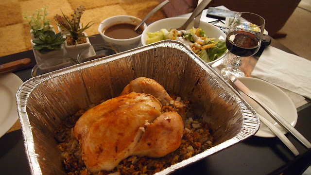 3. Take the chicken out of the fridge, now embrace it with pepper, herbs, butter and/or any seasoning you'd like. I used black pepper, garlic and Italian herb mix with butter.